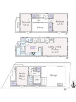 | 土地面積 | 51.84m2(15.6坪) 登記簿 別途私道負担109.00m2 | 建物延面積 | 78.39m2 |