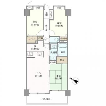 | 間取り | 3LDK | 専有面積 | 65.12m2(19.6坪) 壁芯 |