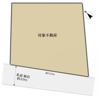 | 接道状況 | 一方 南西約4.0m私道、間口:約12.2m(位置指定道路) | ||