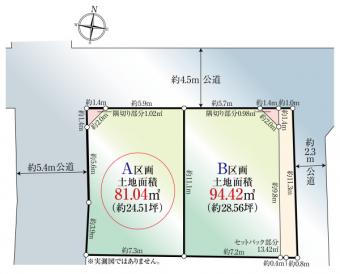 | 備考 | ●全2区画: 今回販売2区画(A区画) ●土地面積は、現況測量図による実測面積であり確定測量の結果、差異が生じる場合があります。 ●ガス:敷地内引込無、引込後引渡 ●上下水:敷地内引込有 ●写真撮影/2025年11月□隅切り約1.02m2含□日影規制4h-2.5h/1.5m |