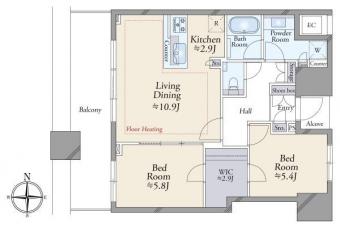 | 間取り | 2LDK | 専有面積 | 62.42m2(18.8坪) 壁芯 |