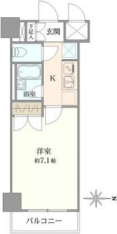 | 間取り | 1K | 専有面積 | 21.98m2(6.6坪) 壁芯 |