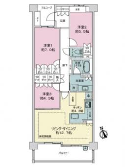 | 間取り | 3LDK | 専有面積 | 80.55m2(24.3坪) 壁芯 |