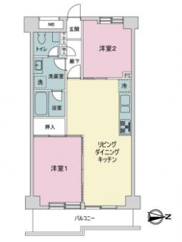 | 間取り | 2LDK | 専有面積 | 50.76m2(15.3坪) 壁芯 |