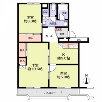 | 間取り | 3K | 専有面積 | 74.00m2(22.3坪) 壁芯 |