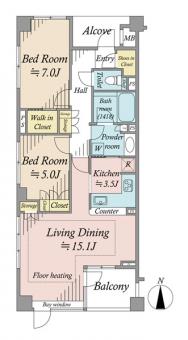 | 間取り | 2LDK | 専有面積 | 71.61m2(21.6坪) 壁芯 |