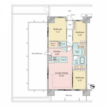 | 間取り | 3LDK | 専有面積 | 70.45m2(21.3坪) 壁芯 |