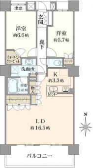 | 間取り | 2LDK | 専有面積 | 72.90m2(22.0坪) 壁芯 |