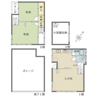 | 土地面積 | 34.41m2(10.4坪) 実測 別途私道負担3.94m2 | 建物延面積 | 58.50m2 |