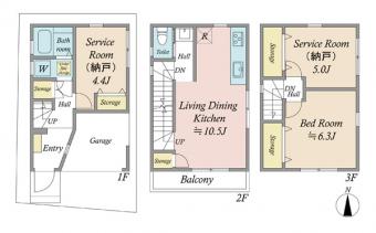| 土地面積 | 42.40m2(12.8坪) 登記簿 | 建物延面積 | 69.30m2 |