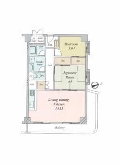 | 間取り | 2LDK | 専有面積 | 60.80m2(18.3坪) 壁芯 |