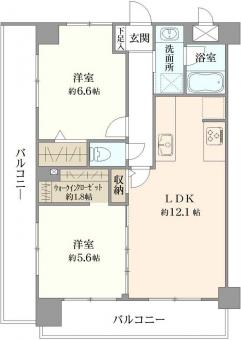 | 間取り | 2LDK | 専有面積 | 57.96m2(17.5坪) 壁芯 |