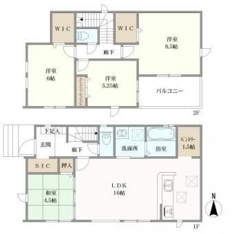 | 間取り | 4LDK+2WIC+SIC(WIC=ウォークインクローゼット、SIC=シューズインクローゼット) | ||