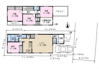 | 土地面積 | 101.22m2(30.6坪) 登記簿 | 建物延面積 | 95.63m2 |