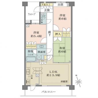 | 間取り | 3LDK | 専有面積 | 73.61m2(22.2坪) 壁芯 |