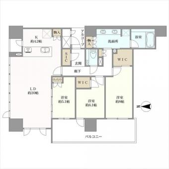 | 間取り | 3LDK | 専有面積 | 104.02m2(31.4坪) 壁芯 |