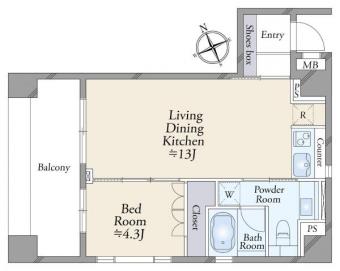 | 間取り | 1LDK | 専有面積 | 42.98m2(13.0坪) 壁芯 |