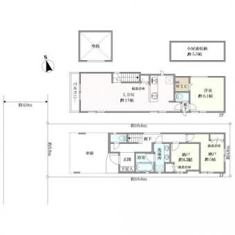 | 土地面積 | 80.14m2(24.2坪) 登記簿 | 建物延面積 | 94.20m2 車庫部分12.19m2含む |