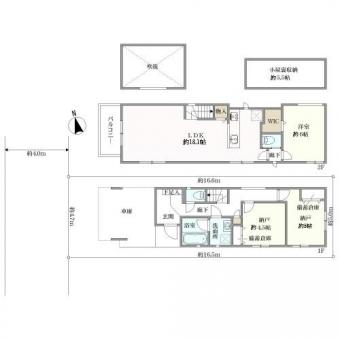 | 土地面積 | 81.25m2(24.5坪) 登記簿 | 建物延面積 | 94.87m2 車庫部分12.16m2含む |