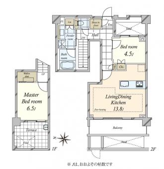 | 備考 | ・1・2階 メゾネットタイプ(・本物件は地上1・2階ですが、登記簿上は地上1階・地下1階に存しています。) ・WIC=ウォークインクローゼット ・SIC=シューズインクローゼット/テラス:8.16m2 |