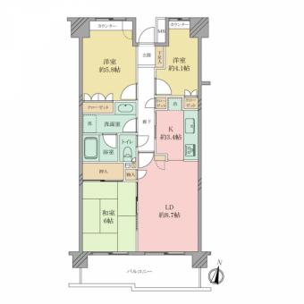 | 間取り | 3LDK | 専有面積 | 64.26m2(19.4坪) 壁芯 |