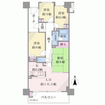 | 間取り | 4LDK | 専有面積 | 73.63m2(22.2坪) 壁芯 |