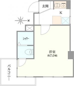 | 間取り | 1K | 専有面積 | 20.07m2(6.0坪) 壁芯 |