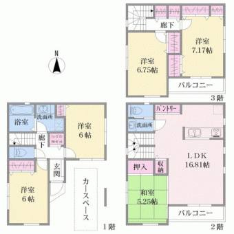 | 土地面積 | 77.44m2(23.4坪) 登記簿 | 建物延面積 | 117.72m2 |