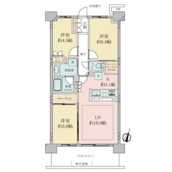 | 間取り | 3LDK | 専有面積 | 64.09m2(19.3坪) 壁芯 |