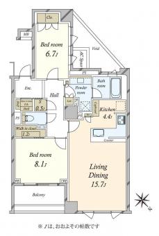 | 間取り | 2LDK | 専有面積 | 87.00m2(26.3坪) 壁芯 |