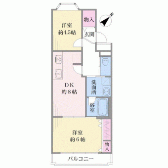 | 間取り | 2DK | 専有面積 | 45.66m2(13.8坪) 壁芯 |