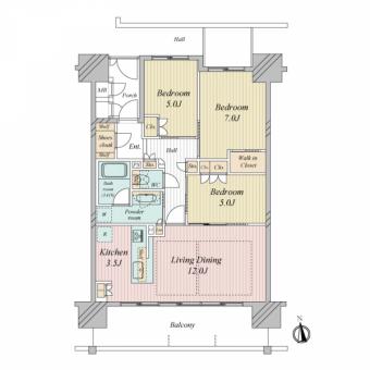 | 間取り | 3LDK | 専有面積 | 75.46m2(22.8坪) 壁芯 |