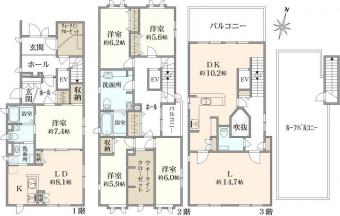 | 土地面積 | 194.54m2(58.8坪) 登記簿 | 建物延面積 | 217.13m2 |
