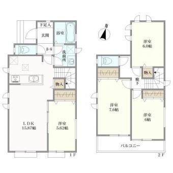 | 土地面積 | 123.45m2(37.3坪) 実測 | 建物延面積 | 96.05m2 |