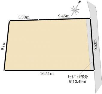 | 備考 | ・上記セットバック面積は簡易計算に基づくため、狭隘協議後に面積が前後する場合があります。/設備:公営水道、本下水セットバック面積:13.49m2/都市計画法他制限:第1種高度地区 |