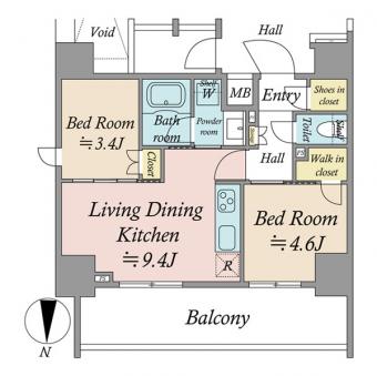 | 間取り | 2LDK | 専有面積 | 41.20m2(12.4坪) 壁芯 |