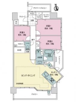| 間取り | 3LDK | 専有面積 | 98.39m2(29.7坪) 壁芯 |