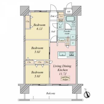 | 間取り | 3LDK | 専有面積 | 62.65m2(18.9坪) 壁芯 |