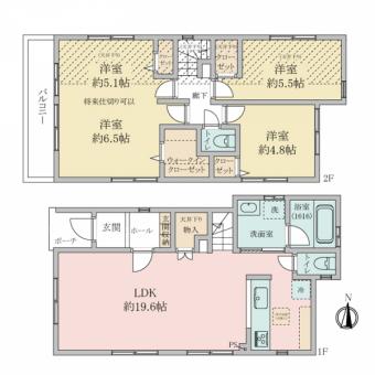 | 土地面積 | 127.87m2(38.6坪) 登記簿 別途私道負担0.54m2 | 建物延面積 | 95.01m2 |