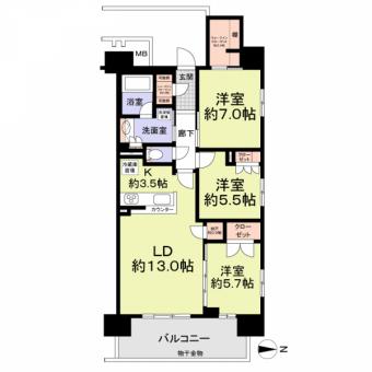 | 間取り | 3LDK | 専有面積 | 80.10m2(24.2坪) 壁芯 |