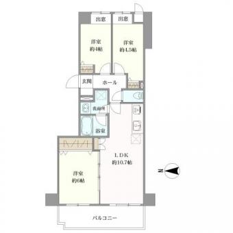 | 間取り | 3LDK | 専有面積 | 55.22m2(16.7坪) 壁芯 |