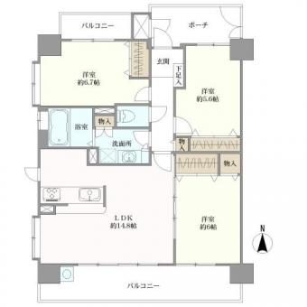 | 間取り | 3LDK | 専有面積 | 72.96m2(22.0坪) 壁芯 |