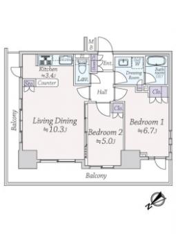 | 間取り | 2LDK | 専有面積 | 55.42m2(16.7坪) 壁芯 |