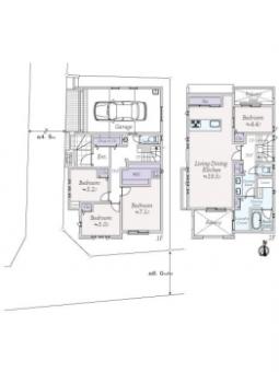 | 土地面積 | 116.19m2(35.1坪) 登記簿 別途私道負担134.69m2 | 建物延面積 | 140.97m2 |