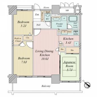 | バルコニー | 14.61m2 | 主要採光方向 | 南西 |