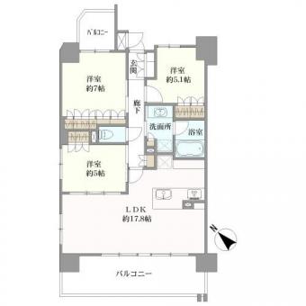 | 間取り | 3LDK | 専有面積 | 75.55m2(22.8坪) 壁芯 |