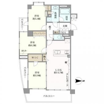 | 間取り | 3LDK+WIC(WIC=ウォークインクローゼット) | 専有面積 | 75.06m2(22.7坪) 壁芯 |