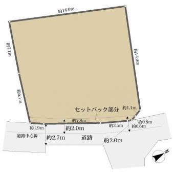 | 接道状況 | 一方 東約2.7m公道、間口:約13.8m | ||