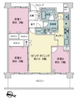 | 間取り | 3LDK | 専有面積 | 68.07m2(20.5坪) 壁芯 |