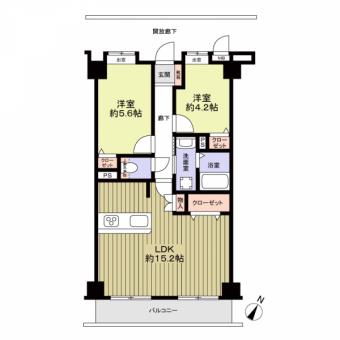 | 間取り | 2LDK | 専有面積 | 57.45m2(17.3坪) 壁芯 |